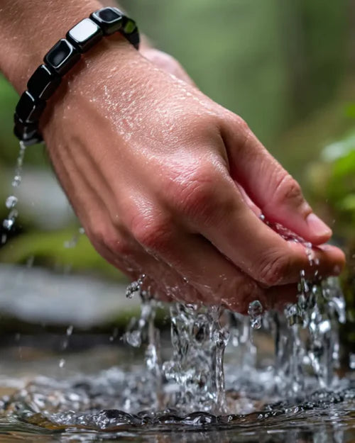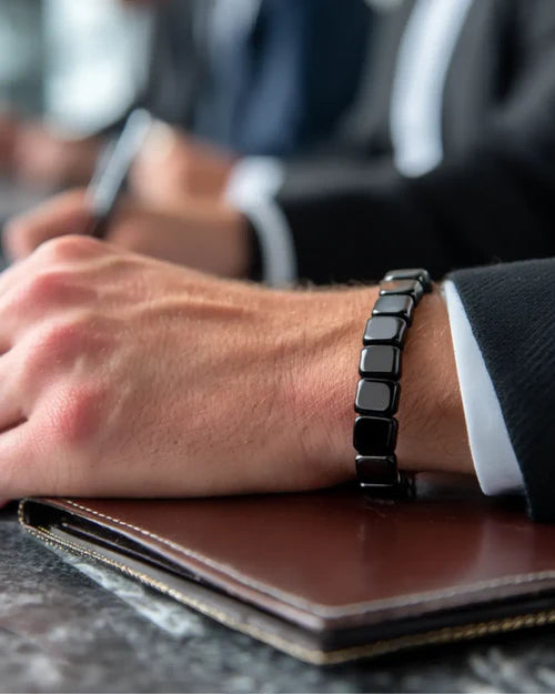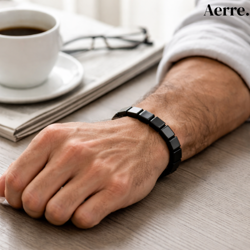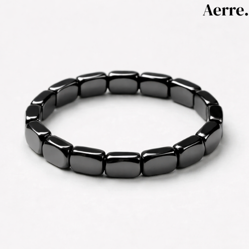 AERRE-armbåndet kanaliserer den eldgamle kraften til hematitt – en magnetisk stein som har vært æret i generasjoner for sine jordende og revitaliserende egenskaper.